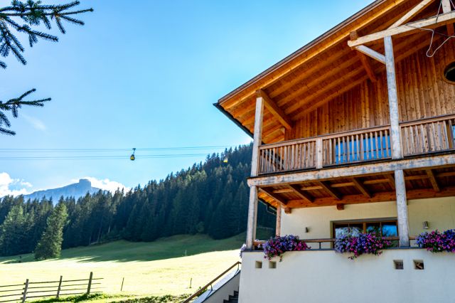 Wie wäre es mit einem Haus mit Blick auf die Gran Risa, eine der berühmtesten Skipisten der Dolomiten, umgeben von Wiesen, in einer ruhigen Lage, nur einen Steinwurf vom Wald entfernt, aber auch nur wenige hundert Meter vom Dorfzentrum mit all seinen Annehmlichkeiten? Bei einem Aufenthalt in den Apartments Pré Calalt in Stern in Alta Badia können Sie diese ideale Lage genießen. Im Sommer haben Sie den Luxus, Ihr Auto und den Stress des Parkens einfach hinter sich zu lassen: Sie können Ihre Ausflüge direkt vor der Haustüre beginnen. Die Kinder können sich im Garten frei und sicher austoben, während Sie Ihren Blick über die majestätischen Gipfel des Tals schweifen lassen. Sobald Sie im Winter Ihre Füße vor die Tür setzen, sind Sie schon auf der Skipiste. Ruhe, Aktivitäten im Freien, einzigartige Aussichten. Was können Sie sich mehr von Ihrem Urlaub wünschen?